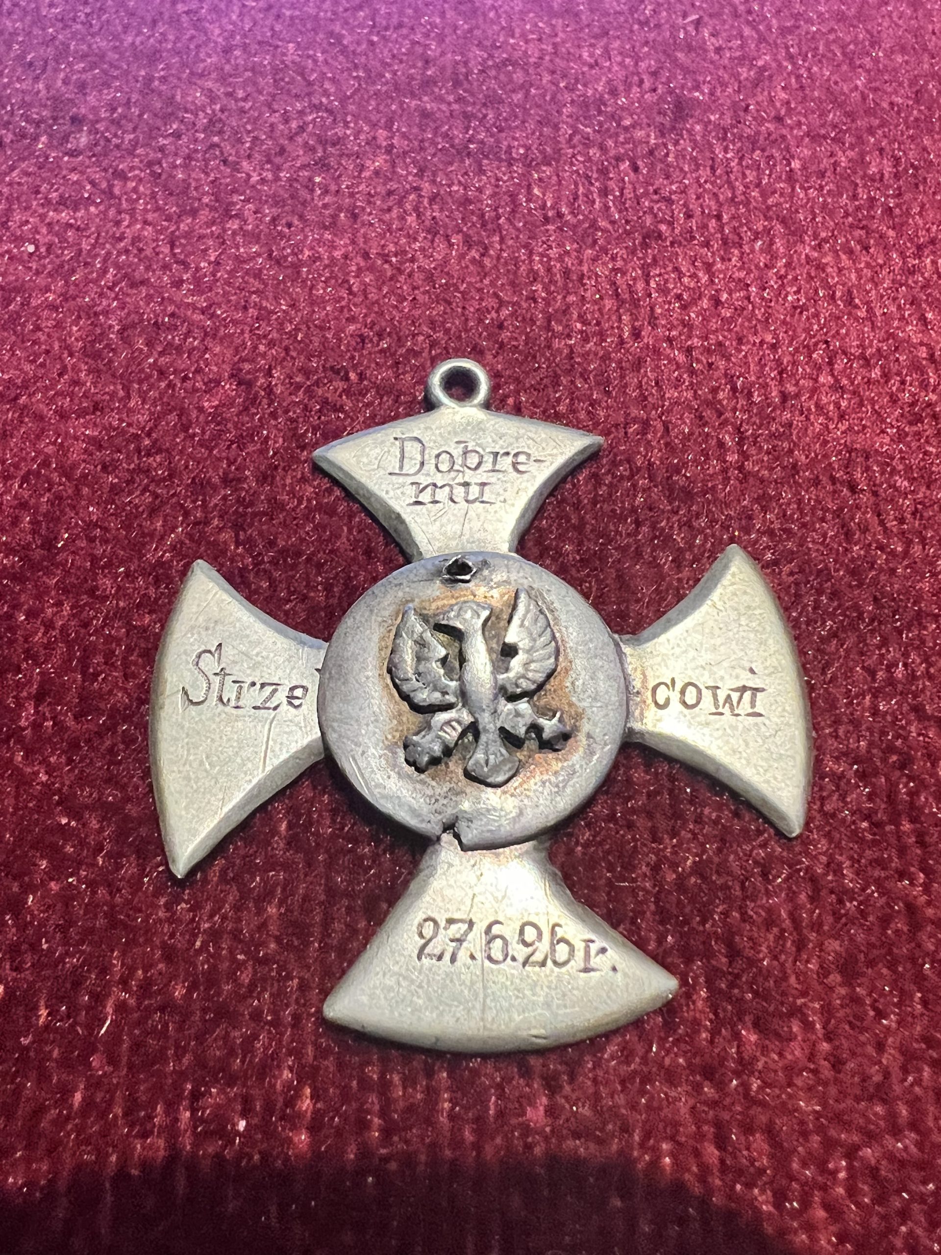 Odznaka w formie krzyża dla dobrego strzelca z 1926 roku;